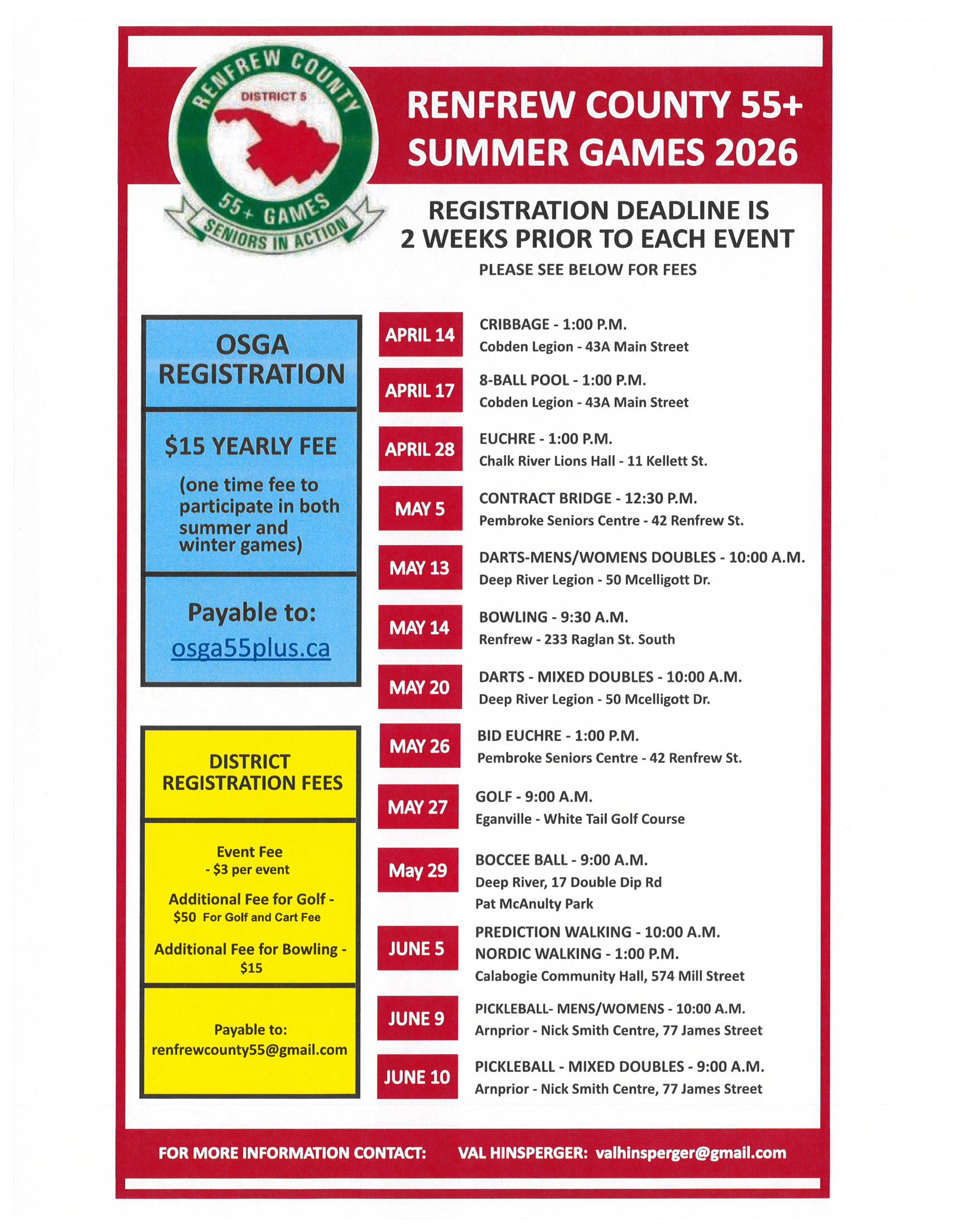 We are excited to bring you the 2026 55+ Seniors Summer Games Information.