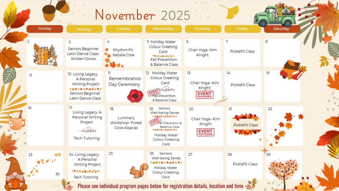 All programs listed below are FREE for seniors aged 55+ in Deep River, Laurentian Hills, and Head, Clara and Maria with funding provided by the Government of Ontario.